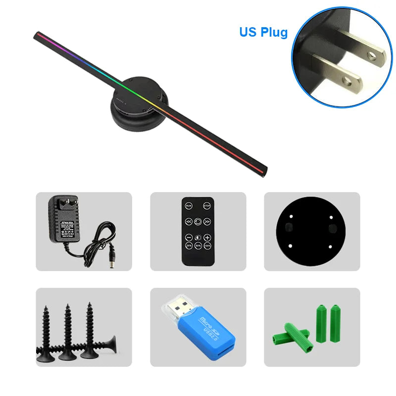 Revolutionize your visual presentations with the 16.5-inch 3D Hologram Fan, an advanced advertising display that brings a new dimension to business store signs, bars, casinos, parties, and Christmas decorations. This state-of-the-art device features built-in WiFi connectivity and a user-friendly app compatible with both Android and Apple devices, allowing seamless customization of content on the fly. The high-brightness LED lights ensure vivid colors, exceptional clarity, and lifelike visuals, making your displays truly captivating. With its sleek cover design, this hologram projector adds a touch of sophistication to any setting. As a bonus, upon purchase, you gain access to our extensive video library, offering diverse content, including holiday-themed displays. Elevate your brand presence and storytelling with the 16.5-inch 3D Hologram Fan, where innovation meets immersive visuals.